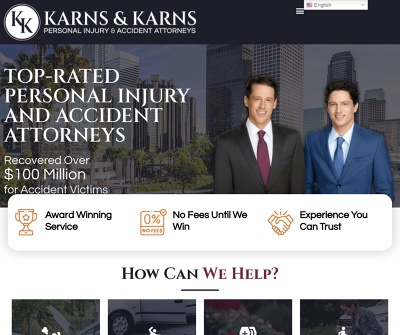 Welcome to Karns & Karns Injury and Accident Attorneys Los Angeles, California Branch. We are a leading Los Angeles personal injury attorneys firm. The accident attorneys at Karns & Karns have experienced trial lawyers who have successfully represented the victims of car accidents, motorcycle accidents, train accidents, wrongful death, slip and fall accidents, dangerous and defective products, unsafe medical devices, bad drugs, construction site accidents, pedestrian accidents, boat accidents, insurance bad faith, and traumatic brain injury. Are you looking for a personal injury attorney in Los Angeles, CA area? Our Los Angeles accident attorneys are here 24/7 available to help you. We are here to guide you through the legal process each step of the way. At Karns & Karns, we give you the best service to get the best results. Karns & Karns, we offer FREE consultation and NO fees unless we win your case.