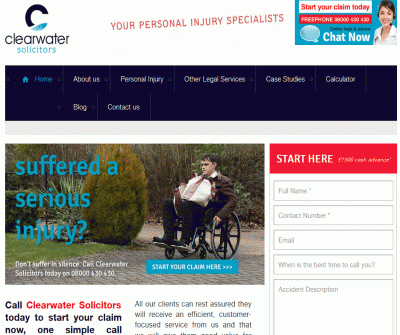 Clearwater Solicitors The Most Experienced Personal Injury Solicitors in UK | 100% Compensation - No 25% deduction | No Win No Fee Personal Injury Services UK. All our clients can rest assured they will receive an efficient, customer-focused service from us and that we will give them good value for money. We know how important it is for people to have solicitors that put them first and give them straightforward.