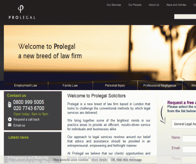 Prolegal is a new breed of law firm based in London that looks to challenge the conventional methods by which legal services are delivered. We bring together some of the brightest minds in our practice areas to provide an efficient, results-driven service for individuals and businesses alike. Our approach to legal services revolves around our belief that advice and assistance should be provided in an entrepreneurial, empowering and forthright manner. At Prolegal we believe that our clients'' opportunities and threats should be treated as if they were our own. Our desire to deliver a first class service means that we have built our expertise around five core practice areas: Employment, Family & Matrimonial, Personal Injury, Professional Negligence and Wealth Management. With this in mind we have created a knowledge centre to empower you with our legal expertise.