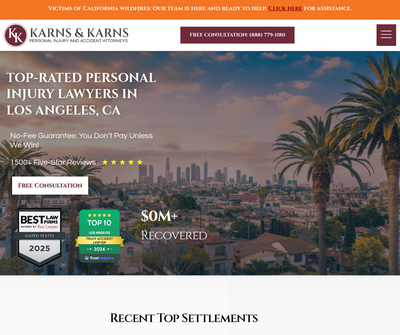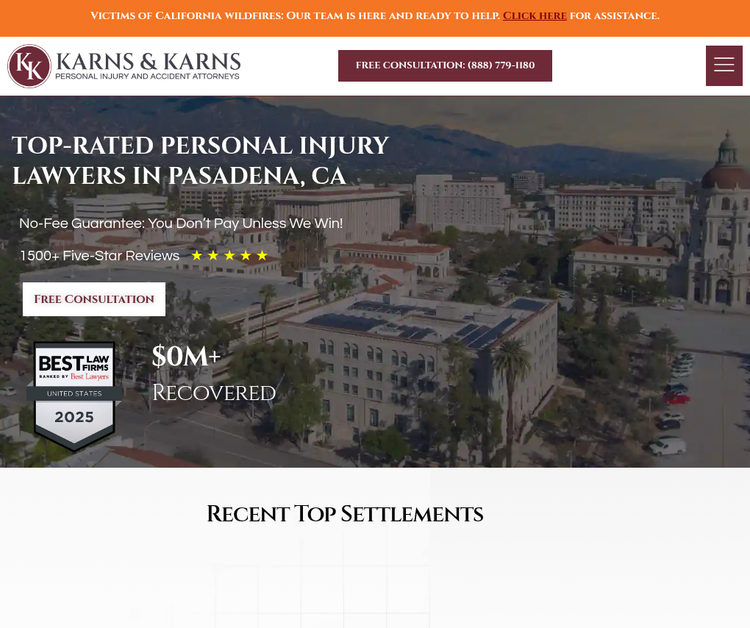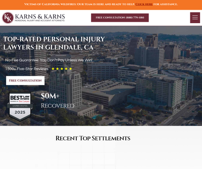 Karns & Karns Personal Injury and Accident Attorneys is a leading personal injury law firm in Pasadena, California, United States. We are a highly experienced Pasadena personal injury attorney firm. The accident attorneys at Karns & Karns have experienced trial lawyers who have successfully represented the victims of car accidents, motorcycle accidents, 18-wheeler, train accidents, wrongful death, slip and fall accidents, dangerous and defective products, unsafe medical devices, bad drugs, construction site accidents, pedestrian accidents, boat accidents, insurance bad faith, and traumatic brain injury, amusement park accident. We''ve won millions for Californians, fearlessly battling big insurance companies. Decades of experience, proven success. Have you been injured in an accident and are looking for a personal injury attorney in Pasadena, CA? Contact the Pasadena personal injury lawyer today to solve all your injury and accident-related cases! Our Pasadena car accident attorneys are available 24/7 to help you. We are here to guide you through the legal process each step of the way. At Karns & Karns, we give you the best service to get the best results. Karns & Karns, we offer FREE consultation and NO fees unless we win your case.