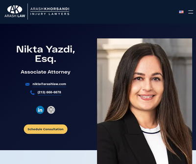 Nikta Yazdi is a dedicated associate attorney at Arash Law, specializing in personal injury cases such as car accidents, product liability, and slip-and-fall incidents. Known for her tenacity and attention to detail, After earning her Juris Doctor from Southwestern Law School, where she served as an editor for the Journal of International Media and Entertainment Law, she joined Arash Law and has since been committed to delivering justice for her clients. Nikta is also an active member of the Consumer Attorneys Association of Los Angeles (CAALA), consistently staying at the forefront of personal injury law. At Arash Law, your well-being is our top priority. As a leading authority in accident and injury law, we have strong connections with top-tier medical professionals across California. Whether you reside in Los Angeles, Riverside, San Diego, or Orange County, we'll swiftly connect you with specialists, without any upfront costs or fees. Trust us to take care of your health and legal needs. Email at nikta@arashlaw.com