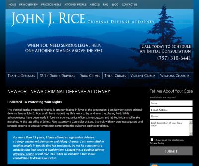Newport New Criminal Defense Attorney with over 30 years experience. Contact Attorney John J. Rice at (757) 873-8809 for a free initial consultation.