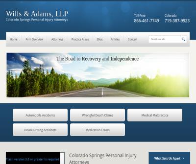 Located in Colorado Springs, Wills & Adams, LLP, handles a wide variety of personal injury, wrongful death and medical malpractice cases throughout Colorado. Call our office at 719-387-9923 to schedule a free initial consultation.