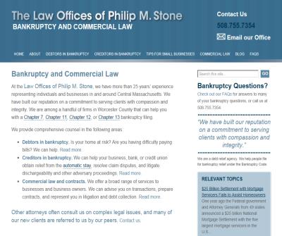 More than 25 years of experience. Contact bankruptcy attorney Philip M. Stone, in Worcester, Massachusetts, for an appointment. Consumers and businesses.