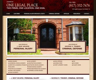 One Legal Place in Fort Worth, Texas, houses the Law Offices of J. Kent McAfee -- focused on personal injury litigation -- and the offices of George R. Trimber, criminal defense attorney. Call 888-378-5517.