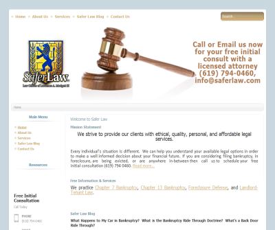 Safer Law is a results oriented, goal driven, and forward thinking firm practicing bankruptcy, eviction/foreclosure defense, and civil litigation. Call now for your free initial consult (619) 794 0460