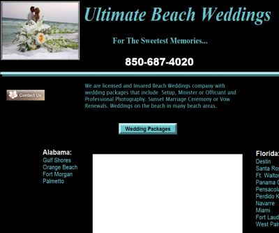 Welcome to Ultimate Beach Weddings & Photography! We are a Mobile Wedding Company that will travel to your beachside location in Destin, Panama City Beach, Pensacola, Miami, Fort Lauderdale, West Palm Beach, Gulf Shores, Navarre, Sandestin, Orange Beach to perform your marriage ceremony on the beach,we have several Wedding Packages available to meet any budget.