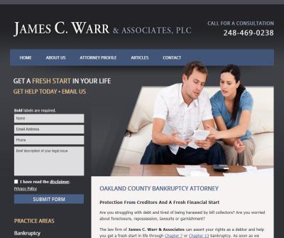 Lawyer at James C. Warr & Associates, PLC has been a bankruptcy lawyer since 1992 and practices bankruptcy, probate court and veterans in Southfield.