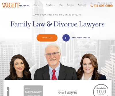 Vaught Law Firm, P.C. is one of the leading law firms in Austin, TX specializing in practice areas such as family law, divorce law, complex property division, property division, collaborative law, spousal support, same sex marriage, and father''s rights.