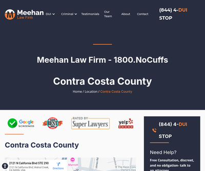 The Meehan Law Firm is California's premier criminal defense firm, founded by former Sheriff and Prosecutor Michael Meehan in 1995. With over 200 years of combined legal experience and 11 strategically located offices across 22 counties, our expert attorneys specialize in DUI and criminal defense cases. As the exclusive California member of the prestigious 1-800-NoCuffs network and recognized by Super Lawyers, we are committed to delivering exceptional legal representation and protecting your rights throughout the Golden State.