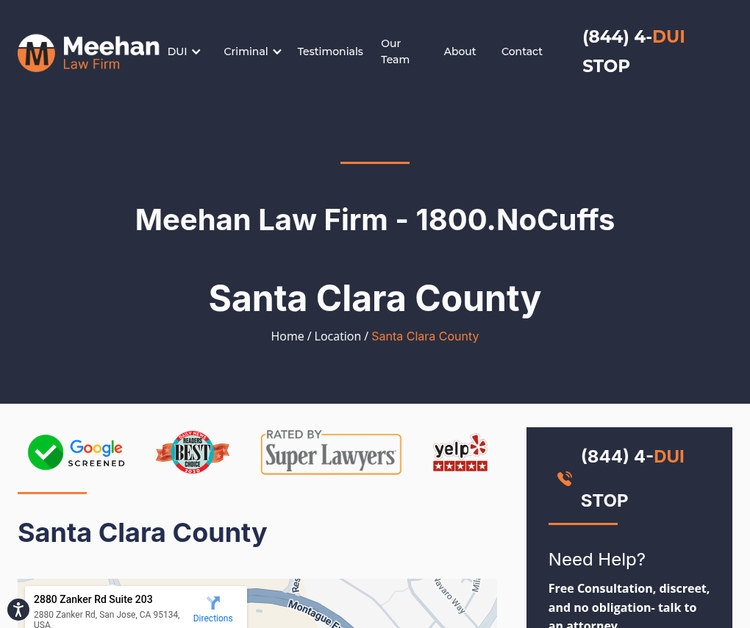 The Meehan Law Firm is California's leading criminal defense firm, founded by Michael Meehan, a former Sheriff and Prosecutor, with over 200 years of combined legal experience. With 11 offices strategically located across 22 California counties, our Super Lawyers-recognized attorneys specialize in DUI and criminal defense cases, providing expert local representation backed by statewide resources. As the exclusive California member of the prestigious 1-800-NoCuffs nationwide network, we're committed to delivering the best possible outcomes through personalized attention, proven success, and unmatched expertise in criminal law.