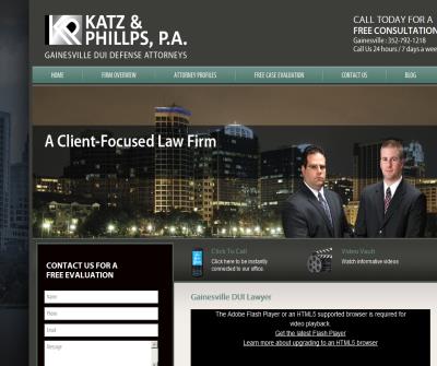 "Katz & Phillips, P.A. is a DUI Law Firm located in Gainesville, Florida. If you have been arrested for a DUI, please give us a call at 352-792-1218. We have lawyers standing by to answer your questions 24 hours a day, 7 days a week. Don't try to figh
