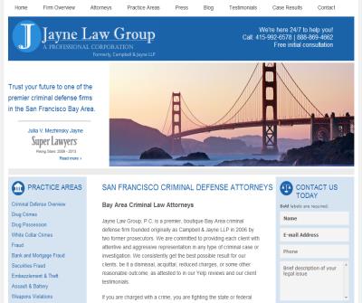Aggressive criminal defense from former prosecutors. Call Jayne Law Group, P.C. in San Francisco at 415-992-6578. Free consultation.