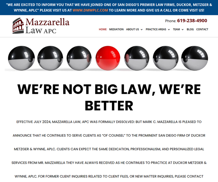 Mazzarella Law APC is a boutique firm that delivers high‑quality, aggressive trial representation from San Diego to Washington D.C.