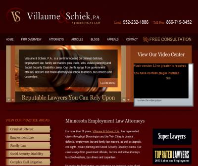 Bloomington, MN, Villaume & Schiek has experience and success with employment law, criminal defense, divorce, wills and SSD claims. 866-719-3452