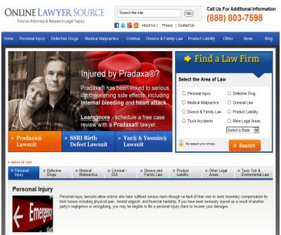 The attorneys listed on our website are specialized in Personal injury, medical malpractice, product liability, criminal and dui, divorce, and defective drugs. We also are a legal resource website, posting news, information relating legal issues.
