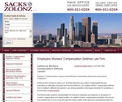 Sacks and Zolonz is a law firm that specializes in Workers' Compensation law with a specialty in defending uninsured and insured employers. 3102167778