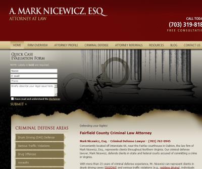 Criminal Defense Law Practice in Fairfax Virginia focusing in DUI, drug possession, assault, weapons & theft cases, at Law Firm A. Mark Nicewicz, Esq.
