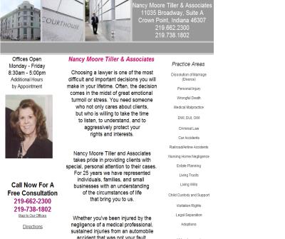 Nancy Moore Tiller a Caring and Aggressive Lawyer for Personal Injury, Divorce, Family Law, Criminal, DUI, Car Accidents, Crown Point, Merrillville, Gary, Lake County and Porter County, Indiana