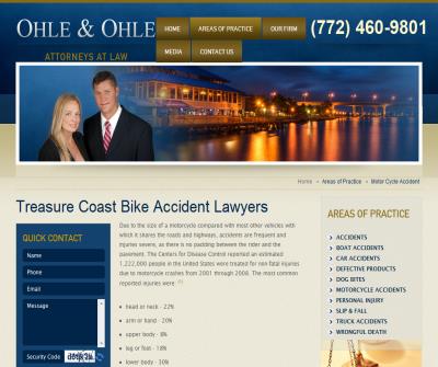 Ohle & Ohle, P.A.'s, lawyers and attorneys are experienced in handling motorcycle accident cases. They serve clients in the Treasure Coast, including Fort Pierce, Port Saint Lucie, Okeechobee, Vero Beach and Stuart. If you or a loved one have been injured