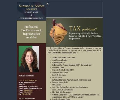 The Law Office of Suzanne Alexandra Ascher, Attorney at Law, Certified Public Accountant, Tax LL.M. Iis an experienced Staten Island tax professional who can represent you or your business with IRS & New York State tax problems in the the areas of: * A