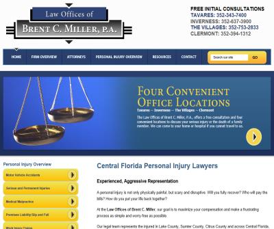 Call 800-323-1243 to discuss a car accident, truck accident, wrongful death, medical malpractice, or other personal injury matter with a lawyer at the Law Offices of Brent C. Miller, P.A. Free consultations. Office locations in Tavares, The Villages, Cler