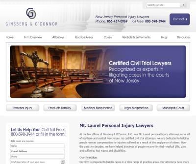 Ginsberg & O'Connor has experience handling Personal Injury and Medical Malpractice cases in Mt Laurel, NJ call 856-727-1991.
