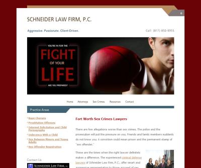 Schneider Law Firm, P.C. in Fort Worth, Texas is an aggressive Sex Crime Defense Firm ready to defend you. Call 817-850-9955.