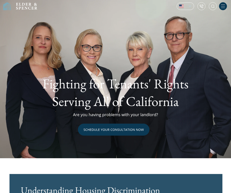 Elder & Spencer represents individuals (tenants) enforcing their basic legal and human rights in the area of housing rights. We represent tenants throughout California in habitability, discrimination and harassment cases. If you're dealing with inhabitable housing or believe you have experienced housing discrimination, we are here to provide guidance, advocate for you, and secure the resolution you deserve.