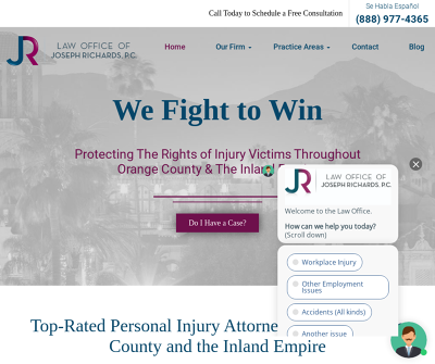 Law Office of Joseph Richards PC, A Workers Compensation, Personal Injury, Employment Law Firm Helping O.C. And I.E Families. NOTICE: Making A False Or Fraudulent Workers'' Compensation Claim Is A Felony Subject To Up To 5 Years In Prison Or A Fine Of Up To $50,000 Or Double The Value Of The Fraud, Whichever Is Greater, Or By Both Imprisonment And Fine.At the Law Office of Joseph Richards, P.C., we fight tirelessly to help injured victims secure the full and fair financial compensation that they deserve. With deep experience handling a broad range of injury and accident claims and a commitment to personal representation, our Orange County personal injury lawyer is focused on results. For a free, no-obligation initial consultation.