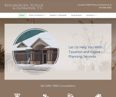 Kollmorgen, Schlue & Zahradnik, P.C. provides legal Services, Real Estate, Probate, Estate Planning, Farm Succession Planning, Business Succession Planning, Divorce, Family Law to the Belle Plaine and Keystone, IA Area. Let us help you handle challenges facing your family, including divorce, child support, child custody, adoption, delinquency, and more. Put your confidence in our 50 years of experience to guide you through your case and ease your stress. Call @ 319-444-3285 to schedule an appointment.
