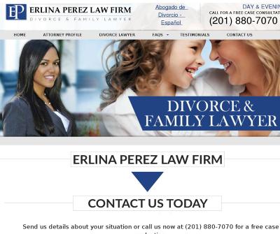 Erlina Perez (formerly Erlina Encarnacion) is a family law and divorce attorney. Ms. Perez has devoted her practice exclusively to matrimonial and family law where she zealously represents clients in matters involving divorce, domestic violence, child custody, child support, parenting time, alimony, division of assets, and related issues. Ms. Perez has successfully handled a variety of cases in her practice of family and matrimonial law. She has experience with all facets of family law litigation, including contested issues of custody, parenting time, child support, alimony and equitable distribution of assets. Ms. Perez has also served as a volunteer attorney for the Jersey Battered Women''s Shelter through its legal advocacy program where she represented clients in numerous domestic violence proceedings. She also volunteers at the County College of Morris, Women''s Center by providing one-on-one legal counseling sessions.