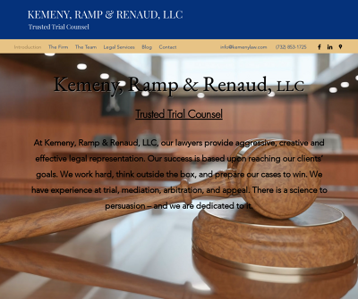 Kemeny, Ramp & Renaud, LLC is a boutique New Jersey civil litigation firm.The firm provides aggressive, creative and effective legal representation. Its success is based upon reaching its clients'' goals. Its lawyers work hard, think outside the box, and prepare cases to win. There is a science to persuasion - and Kemeny, Ramp & Renaud is dedicated to it.The firm represent clients in business disputes, guardianship actions, estate litigation, wrongful death and other personal injury cases.