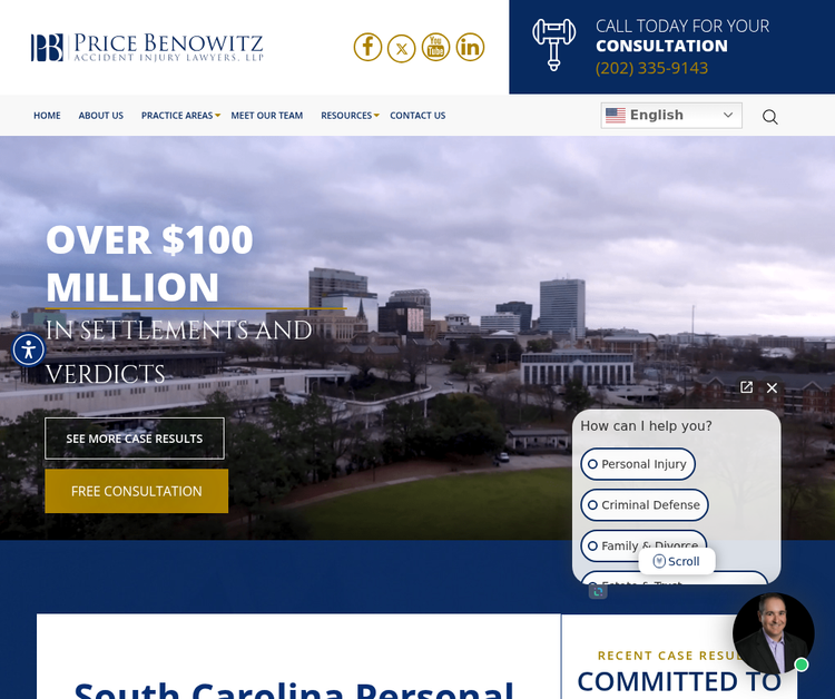 Price Benowitz Accident Injury Lawyers, LLP is a personal injury law firm serving the Greenville, South Carolina community. Our attorneys understand how devastating a personal injury can be for you and your loved ones, and we are committed to pursuing all legal avenues to help you get the compensation you deserve for your injuries. Our practice areas range from automobile accidents, truck accidents, animal attacks, and medical malpractice. If you've been injured as a result of someone else's negligence, call our office today to schedule a free consultation. Hours: Open 24 hours Phone: (864) 664-3702