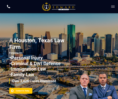 Edward Law Group is a full-service personal injury law firm in Houston, Texas. Our Houston personal injury lawyers focus on achieving justice for their clients. If you are dealing with a legal problem, Our Houston personal injury attorney Edward can investigate your case's facts and help you understand your rights. Are you and your loved one injured in an accident and looking for a personal injury attorney in Houston, TX? Call the Houston personal injury attorneys today. Our Houston attorneys are available 24/7 to assist you with solving all your injury, criminal law, and accident-related cases! Our Houston law firm practices focus on Personal injury law, Auto accident, Worker compensation, Criminal defense, DWI defense, Immigration law, and Family law. Call us now for a free consultation!