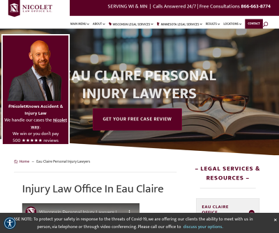 At Nicolet Law Accident & Injury Lawyers S.C., we handle personal injury and automobile accident cases, workers comp and Social Security disability claims, and bankruptcy and debt relief issues across Wisconsin. When you need help recovering and rebuilding, we are here for you and your family. We are dedicated to helping those who are injured or in financial distress get the legal services they need to obtain a fresh start. With offices in Hudson, Eau Claire, Superior, and throughout western Wisconsin and eastern Minnesota, we have helped hundreds of clients who found themselves in stressful situations.